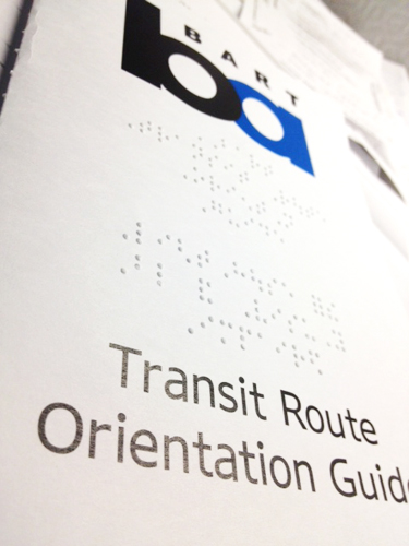 We are distributing Transit Route Orientation Guides for BART, Caltrain and selected Muni and Samtrans routes; and we are offering orientation trainings to make it easier for blind and low vision transit riders to travel independently.