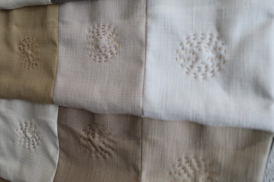 Sample of Claire’s Work 08/09/2019 894 × 596 Sample of Claire’s Work Detail of one of Claire’s pieces, rows of small beige panels of varying shades, each embroidered with a series of concentric circles.