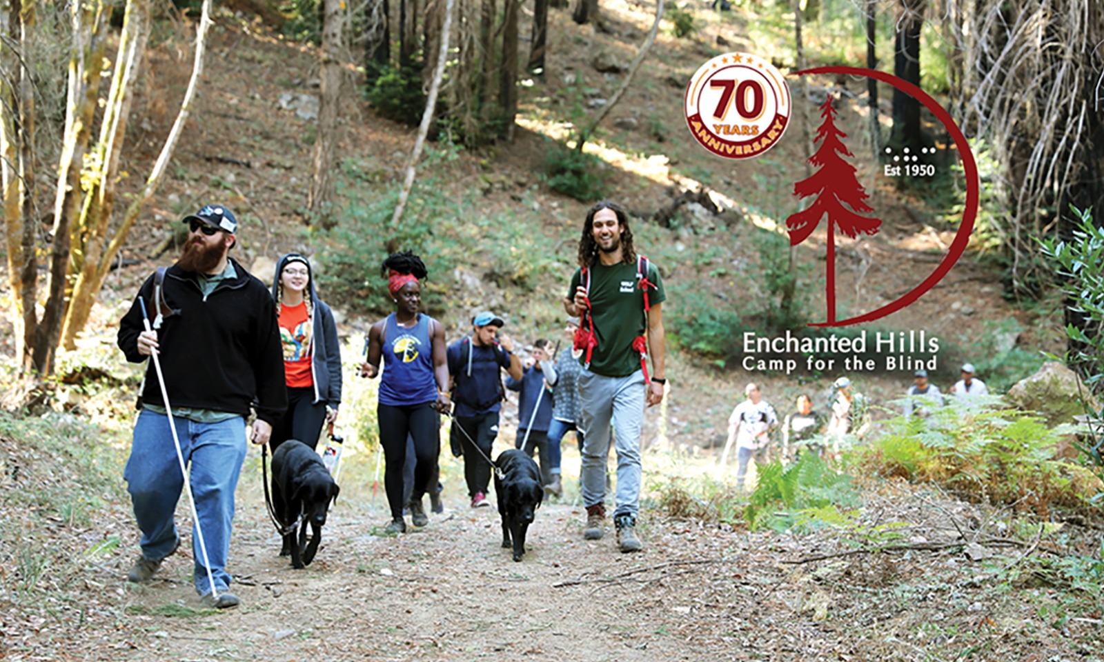 Un grupo de senderismo durante la sesión de EHC. Logotipo del 70 aniversario de EHC en el lateral de la imagen.