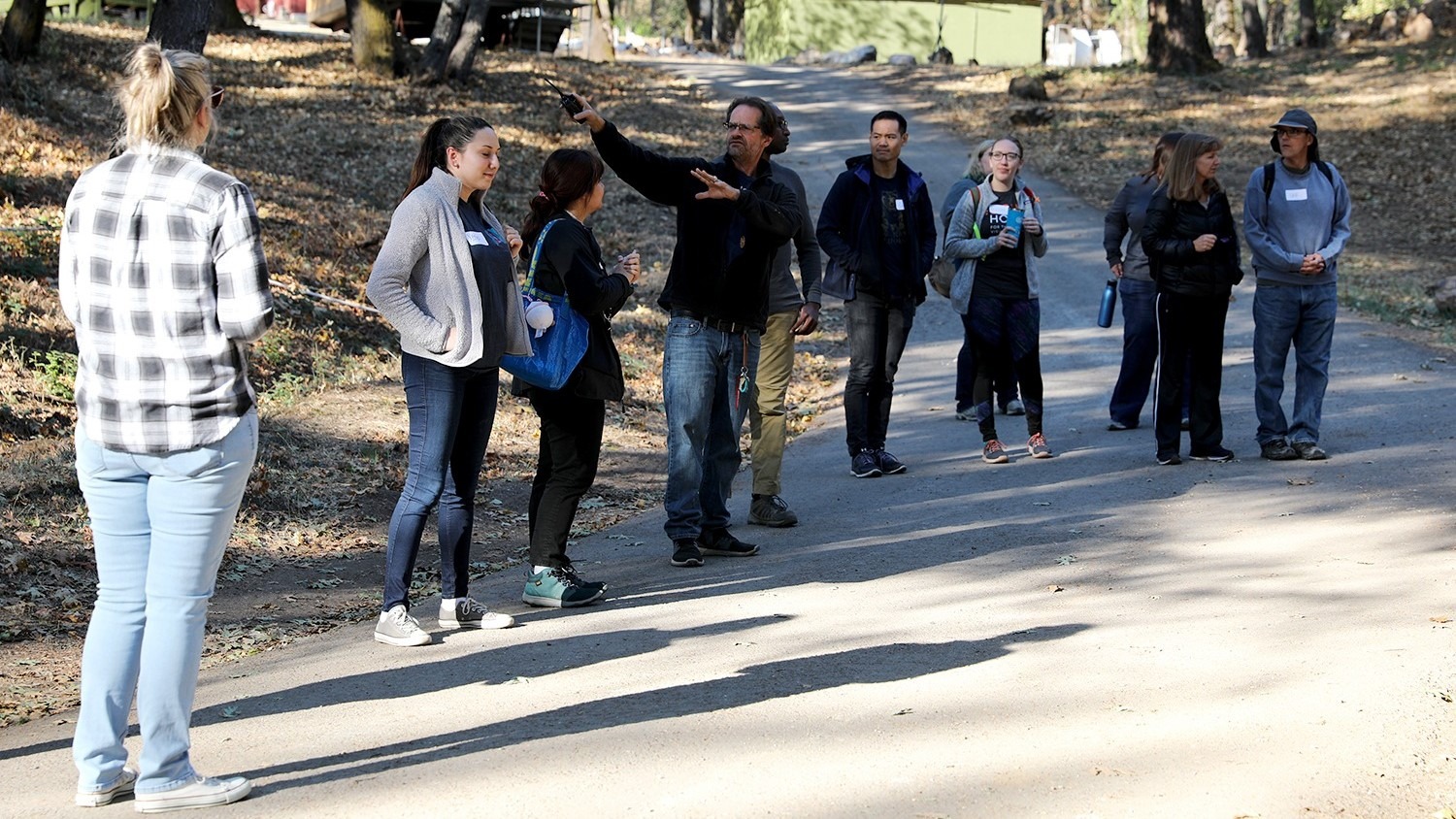 Camp Director Tony Fletcher gives a tour of EHC to volunteers
